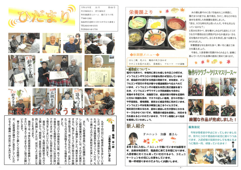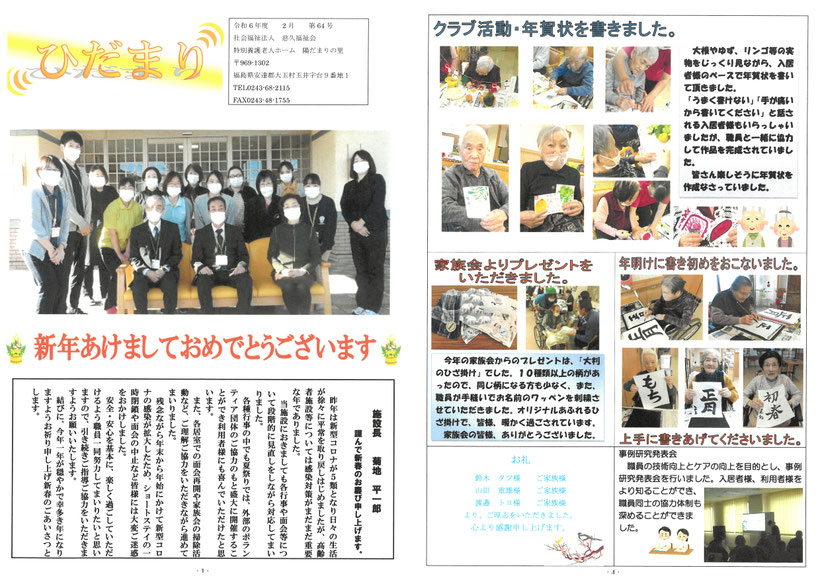 秀峰安達太良山を一望できる大玉村に、利用者様のプライバシーを尊重し、ひなたのようにあたたかな介護を提供できる全個室ユニット型施設として開設いたしました。